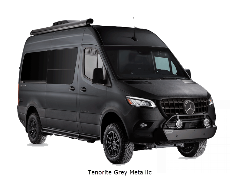 Sleeps 2 Length 19 ft 5 in Ext Width 6 ft 7 in Ext Height 9 ft 9 in Int Height 6 ft 2 in Exterior Color Hightech Silver, Tenorite Grey Metallic Hitch Weight 5000 lbs GVWR 9050 lbs Dry Weight 7595 lbs Cargo Capacity 1455 lbs Fresh Water Capacity 20 gals Grey Water Capacity 16 gals Black Water Capacity 9 gals Fuel Type Diesel Engine 2.0L 4-Cylinder High Output Chassis Mercedes-Benz Sprinter 2500 AWD Horsepower 208 hp Fuel Capacity 24.5 gals Wheelbase 144 in Torque 332 ft-lb Refrigerator Type 12 volt Refrigerator Size 3.1 cu ft Cooktop Burners 1 Number of Awnings 1 LP Tank Capacity 7.8 gals Water Heater Type Truma Combi Eco Plus AC BTU 13500 btu Awning Info Power Armless with Auto Retract Gross Combined Weight 13930 lbs Shower Type Wet/Bath Shower Electrical Service 30 amp