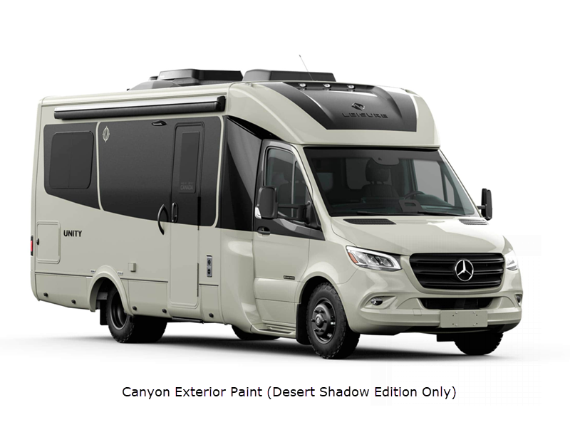 There are versatile floorplans to choose from, all including dry baths, fully equipped kitchens to prepare meals each day, and comfortable sleeping arrangements. Each model sits on the durable and luxurious Mercedes-Benz Sprinter 3500 dual rear wheel chassis for the ultimate driving experience, plus there are power/heated Ultraleather cab seats for even more comfort. A few new features include an all-new entry door, new taillight design, a remote key fob entry on the main entrance door, and more. There is also a Desert Shadow package available on any Unity model; see dealer for more details.