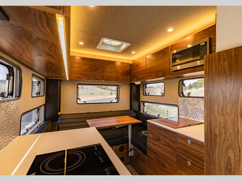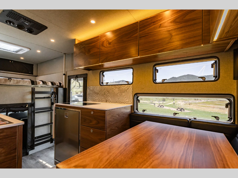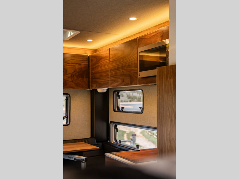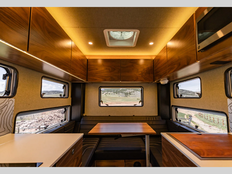 Each model is constructed with a premium Corian countertops and light gray walls and ceiling adding a luxury touch to each piece. Whether you're tackling tougher back roads, listening to your favorite tunes, or planning your day with your co-pilot, the four season insulation will add weather protection and convenience while you travel.